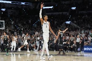 这得是功夫吧!文班亚马闪电变向起飞 空中转身360轻松上篮