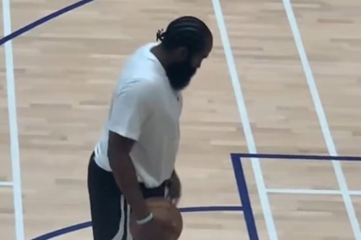 休赛期登哥胖了呢😂哈登中国行训练被球迷拍到 橙色哈登9很吸睛