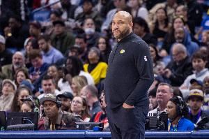 谈到自己在湖人队的执教,他说:“我接手的时候,球队上赛季的战绩是33胜49负,而我执教的那个赛季,我们比上赛季多赢了10多场,最终以43胜39负收官。从西部第13、14名,到最终获得附加赛资格,还击败了安东尼・爱德华兹领衔的年轻、有冲劲的明尼苏达森林狼队,成功晋级季后赛。之后我们淘汰了灰熊,击败了卫冕冠军勇士,他们有斯蒂芬・库里、德雷蒙德・格林、克莱・汤普森这些名人堂级别的球员。最后在西部决赛中遇到了当时状态正佳、现在依然顶尖的尼古拉・约基奇领衔的丹佛掘金队,他们太强大了。”