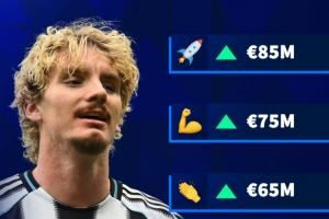 体育资讯10月15日讯 德转即将更新英超球员的身价,德转官方社媒晒出图片,预热纽卡新前锋沃尔特马德的身价变动,他目前的德转身价为3000万欧,最高可升至8500万欧。