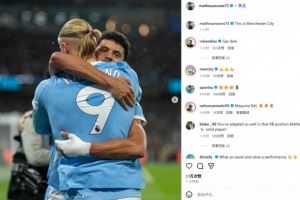精准制导连线哈兰德!努内斯社媒晒两人相拥庆祝照:这就是曼城!