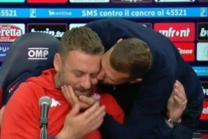 赛后德罗西举行了新闻发布会,而就在他接受采访时,佛罗伦萨前锋哲科进入发布会现场,并且抱住德罗西连亲几口,哲科还说“祝你好运”。哲科和德罗西过去曾是罗马队友,两人关系很好,尽管这次作为对手相遇,但哲科还是以这种方式和德罗西打招呼。